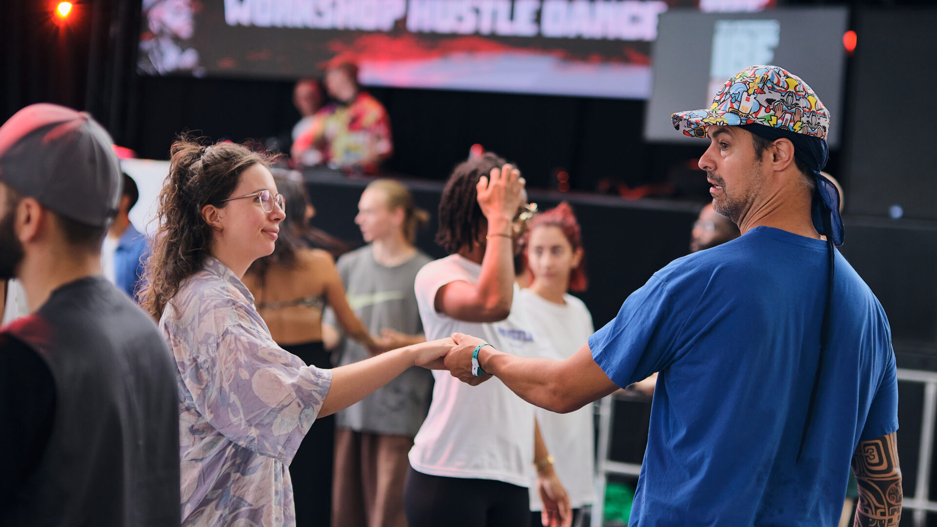 Hustle is more than a partner dance; it’s a space for connection, expression and community.Whill street styles often focus on solo dancers, Hustle offers a space to lead, follow, surrender, and connect with each other. At IBE, hustle stands alongside other street styles that have shaped dance culture from the ground up.